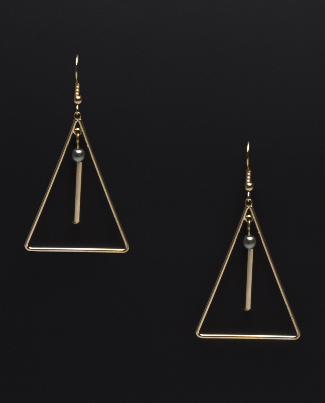 A personal favorite and must-have everyday staple, Bar Triangle Dangler Earrings will enhance any outfit with a touch of geometric luxe. Featuring a metallic bar & stone dangling from a triangular form, it’s the perfect accessory for a formal or casual ensemble.