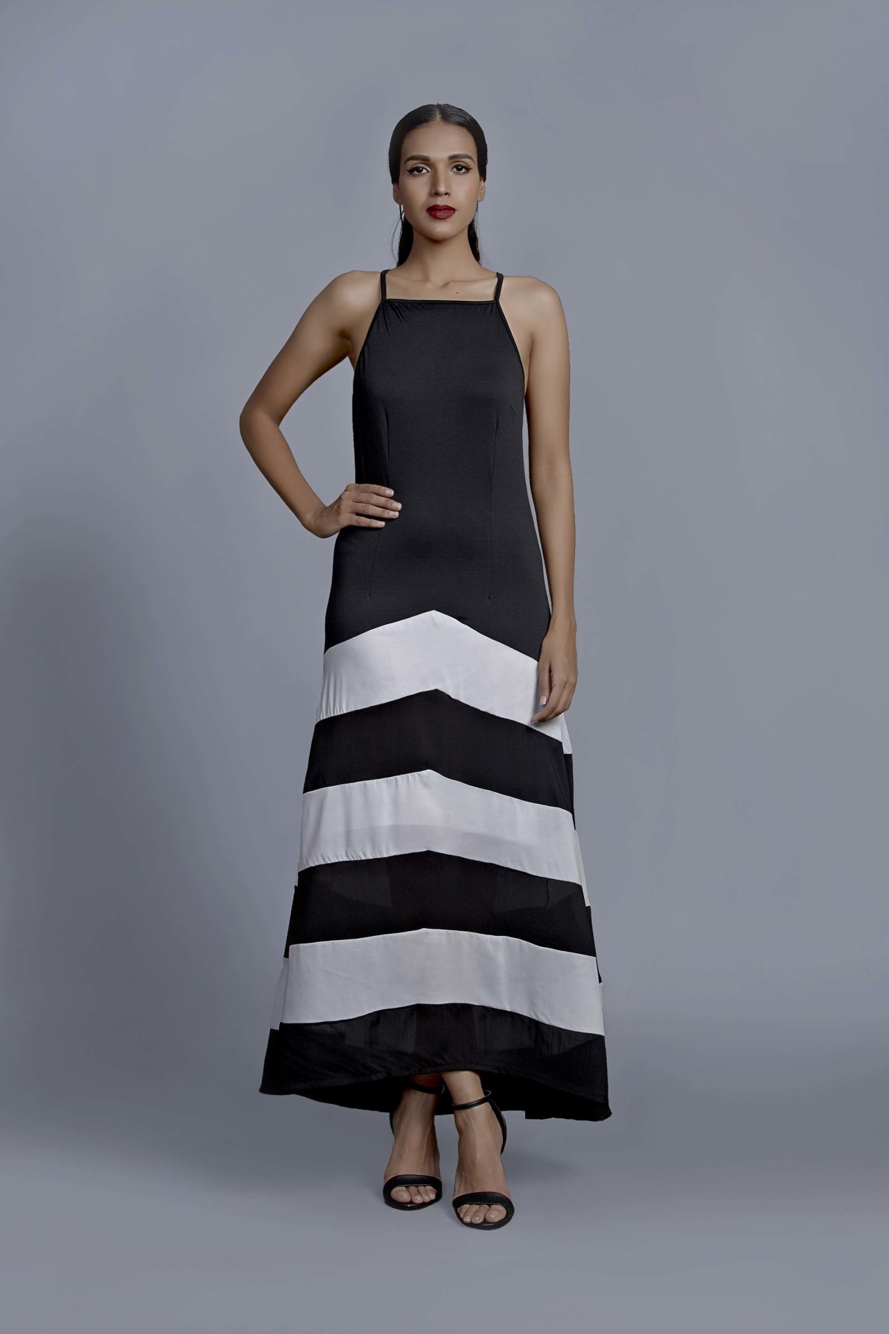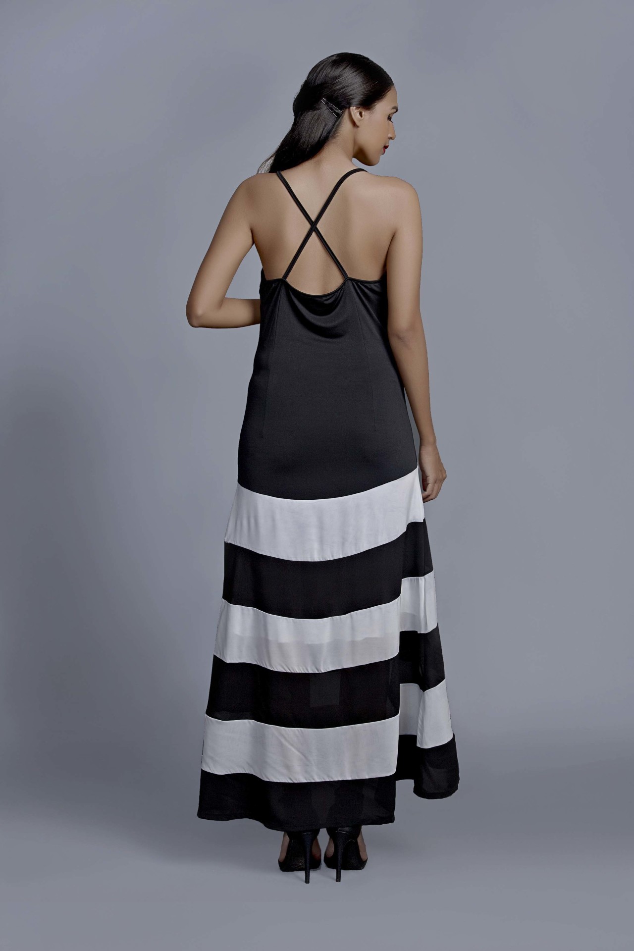 Cause a little chaos this season in this gorgeous monochrome gown. Crafted with a criss cross back and flattering to the body, its perfect for an elegant dinner date.