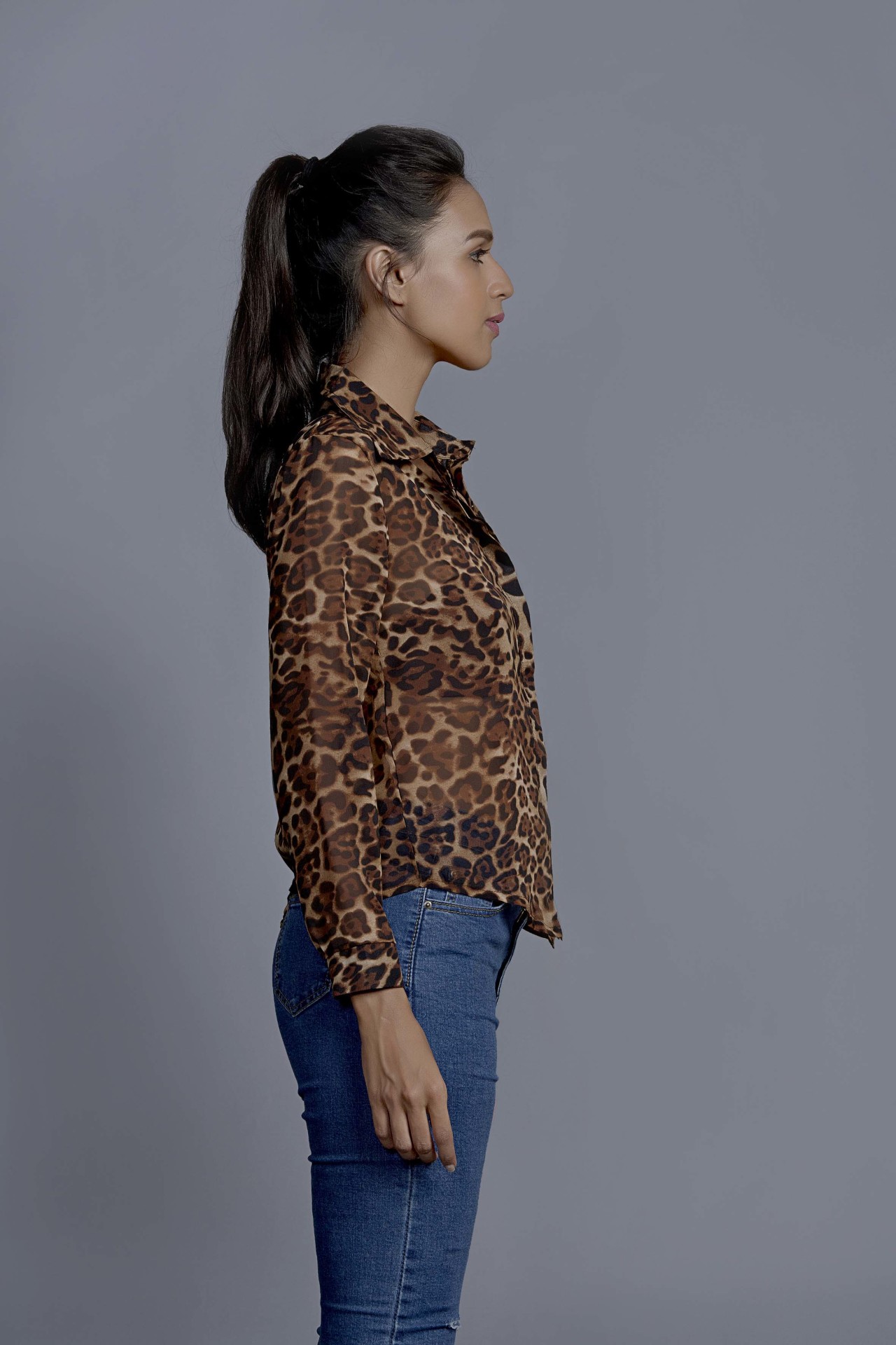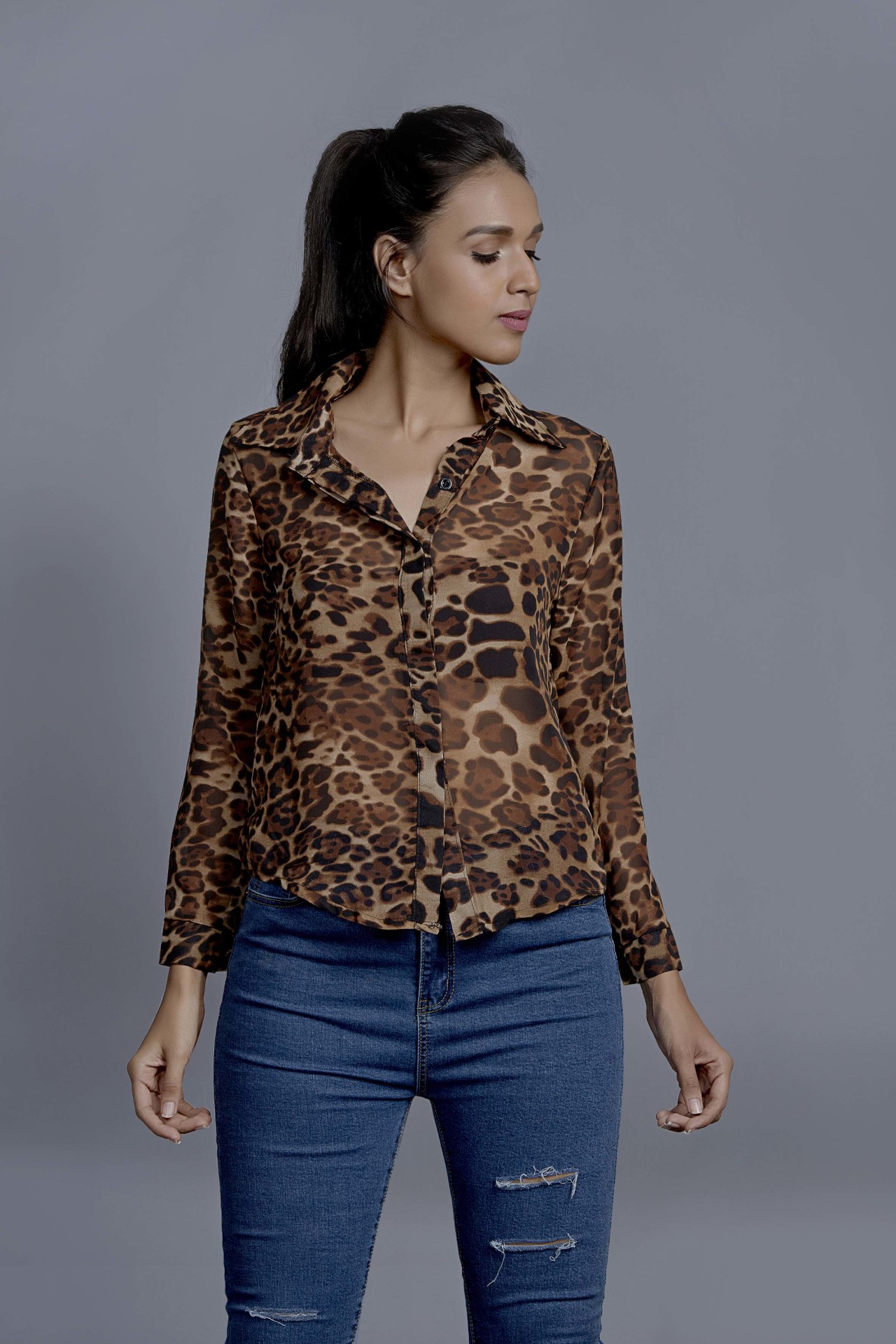 Look fierce in this animal print shirt. With a semi sheer fabric, this shirt is designed to flaunt your unapologetic style.