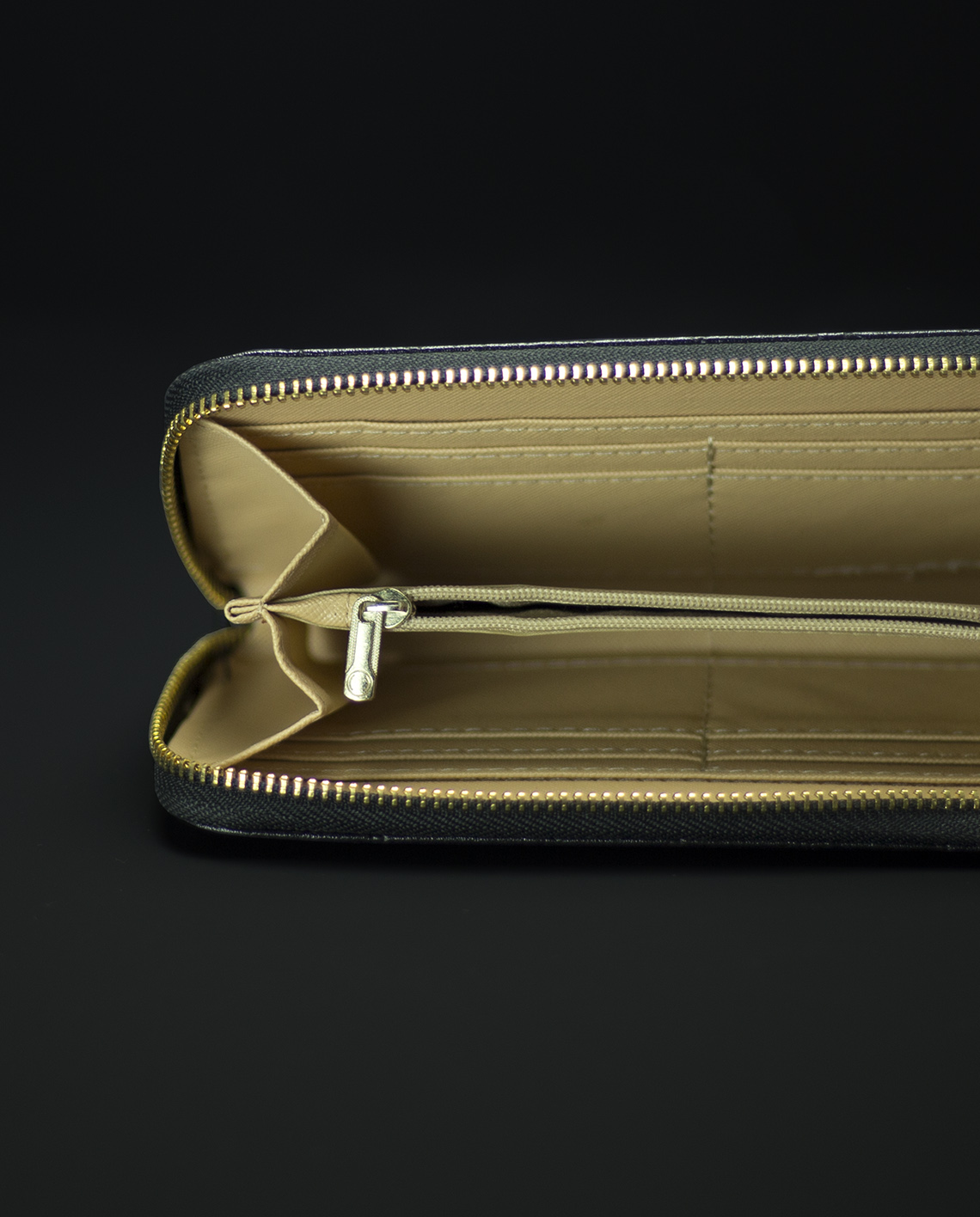 Fashion meets function in a beautifully complex chevron embossed design. With a precisely finished exterior and comprehensive interiors, the Chevron Covet Wallet keeps yours cards, ID, coins, bills and receipts neatly organized. With a classic a secure zip-around closure, it maintain the slim design no matter how many items are inside.