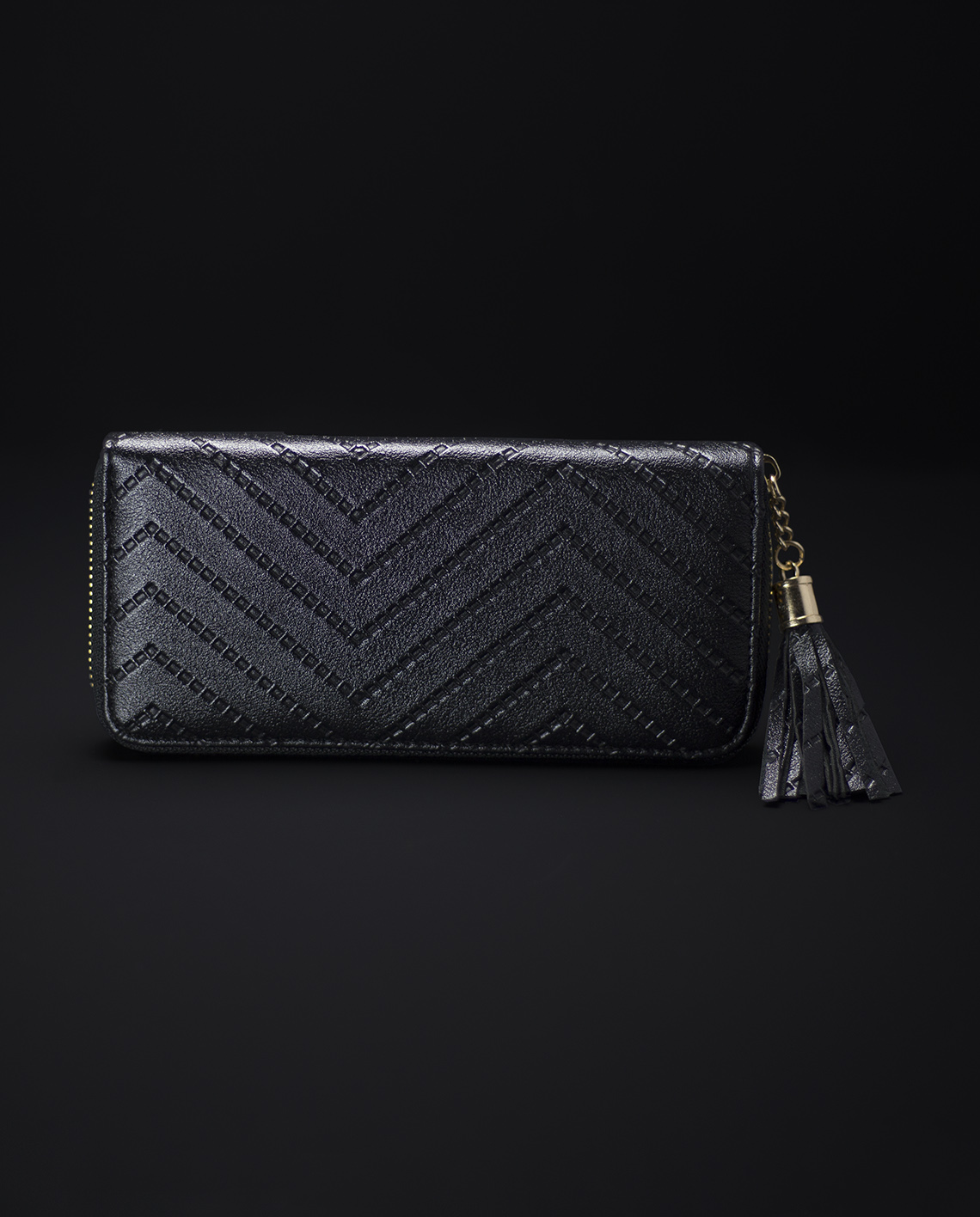 ↝ Carry it in your tote as a part of your everyday essentials or given its chevron patterned exterior and tassel, carry it solo with a casual dress.