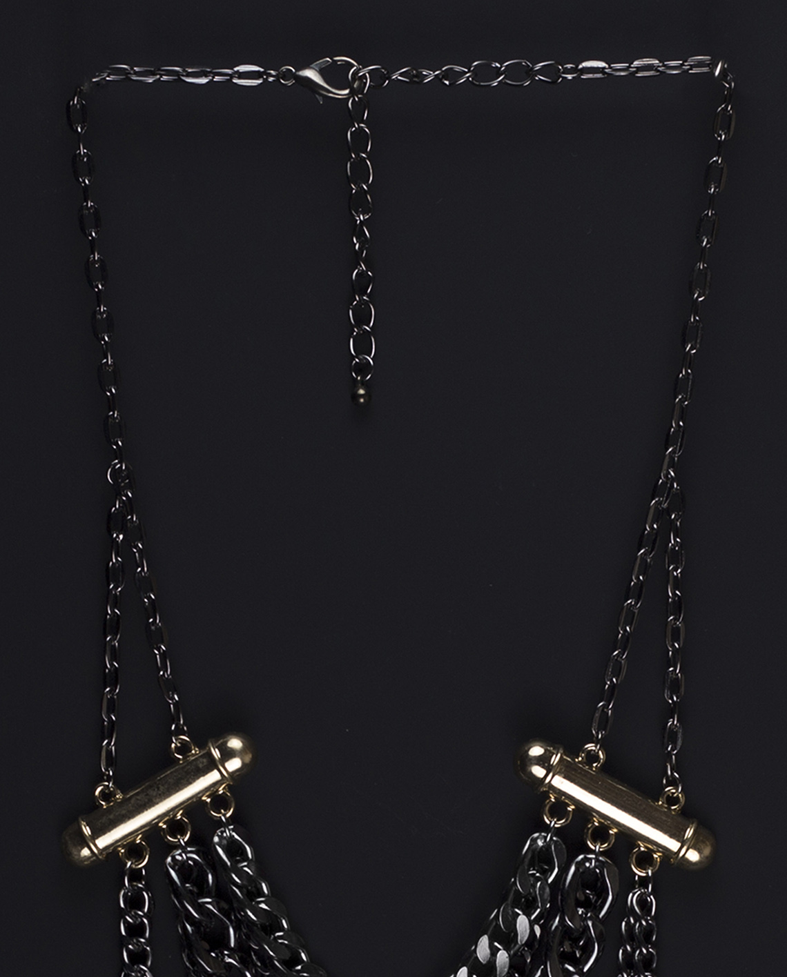 Feel the antique allure with the Claw Pendant Layered Necklace. Featured on three tier layered goldtone chains, two dangling tassels hang side-by-side and a centre claw pendant, create an elegant look.