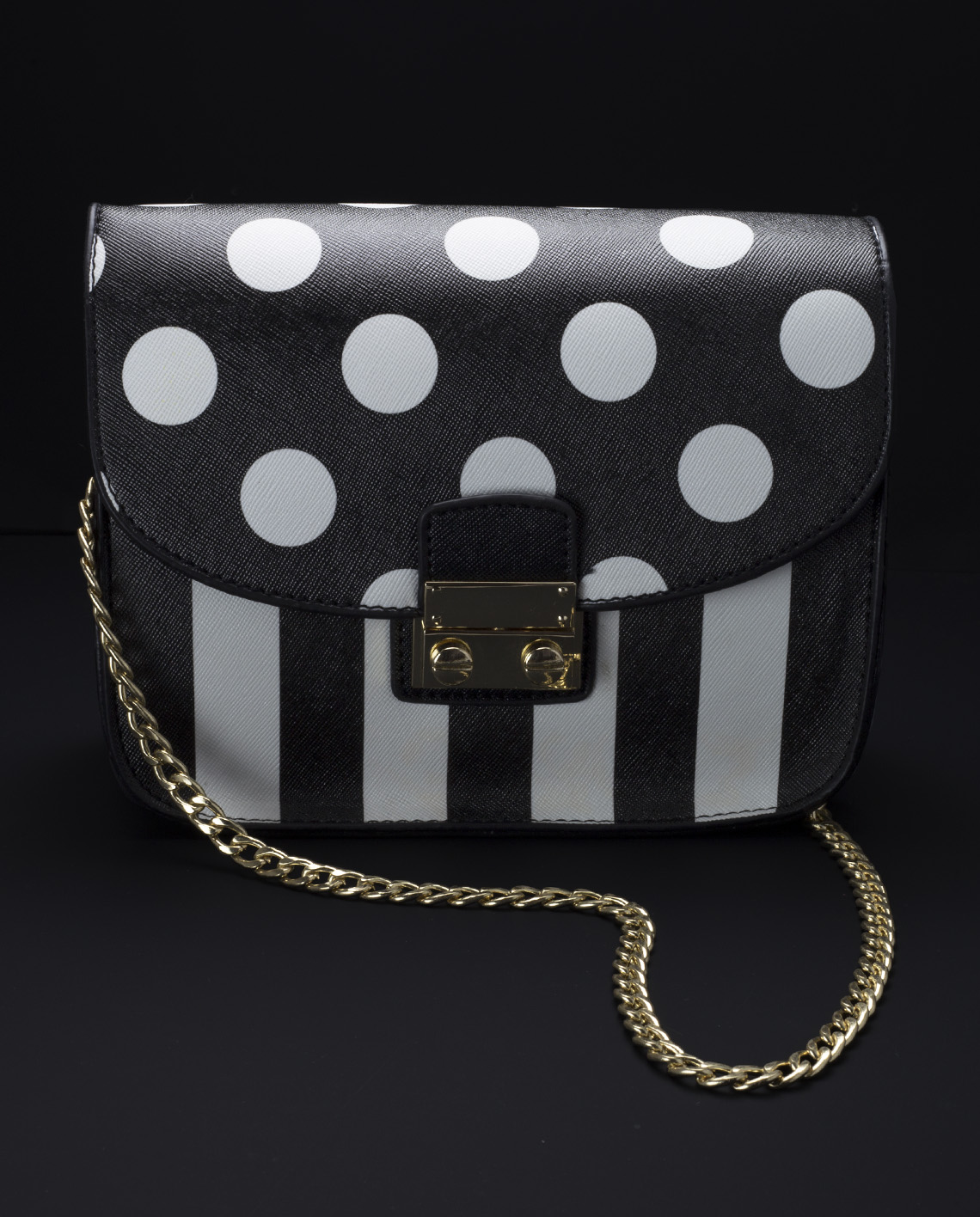 Dress up or dress down, this bag is designed for daytime dates, nighttime soirees or elevated everyday use. With a high-gloss, high-fashion finish the Polka Frenzy Monochrome Sling Bag will look great paired with casual to cocktail.