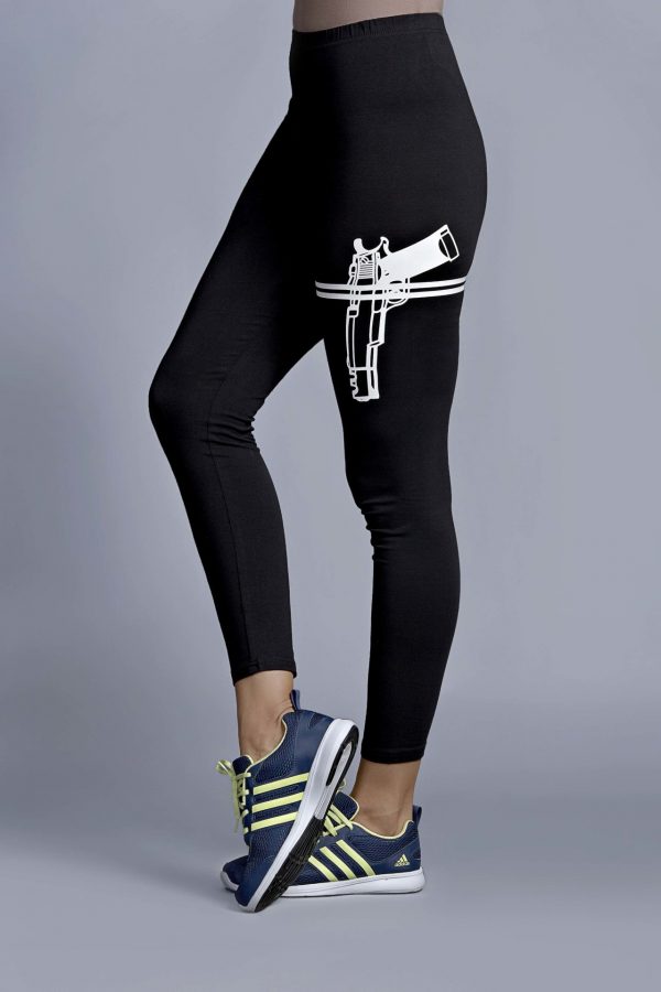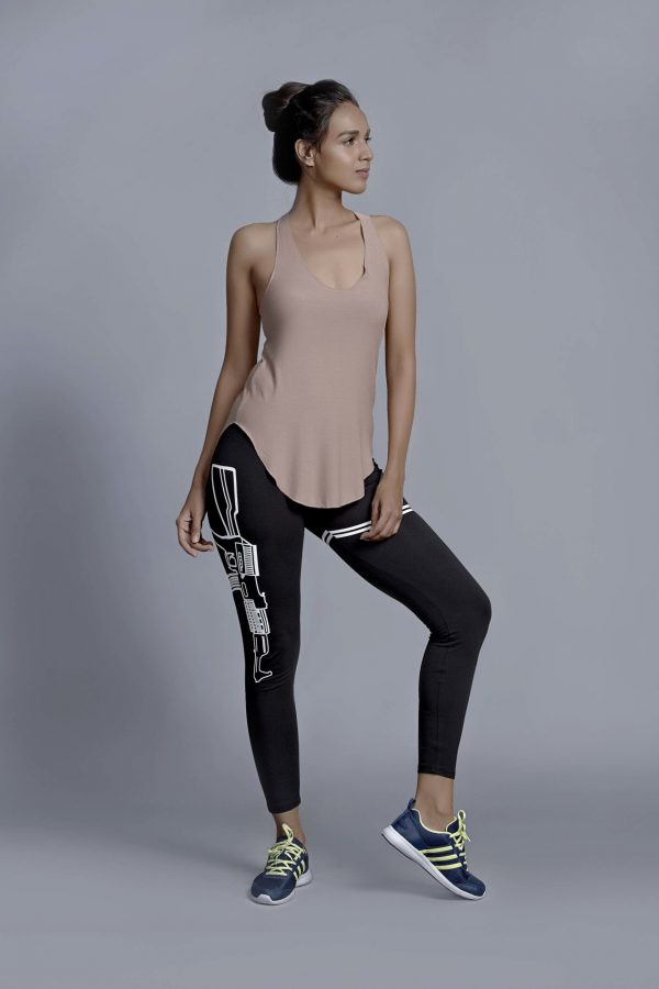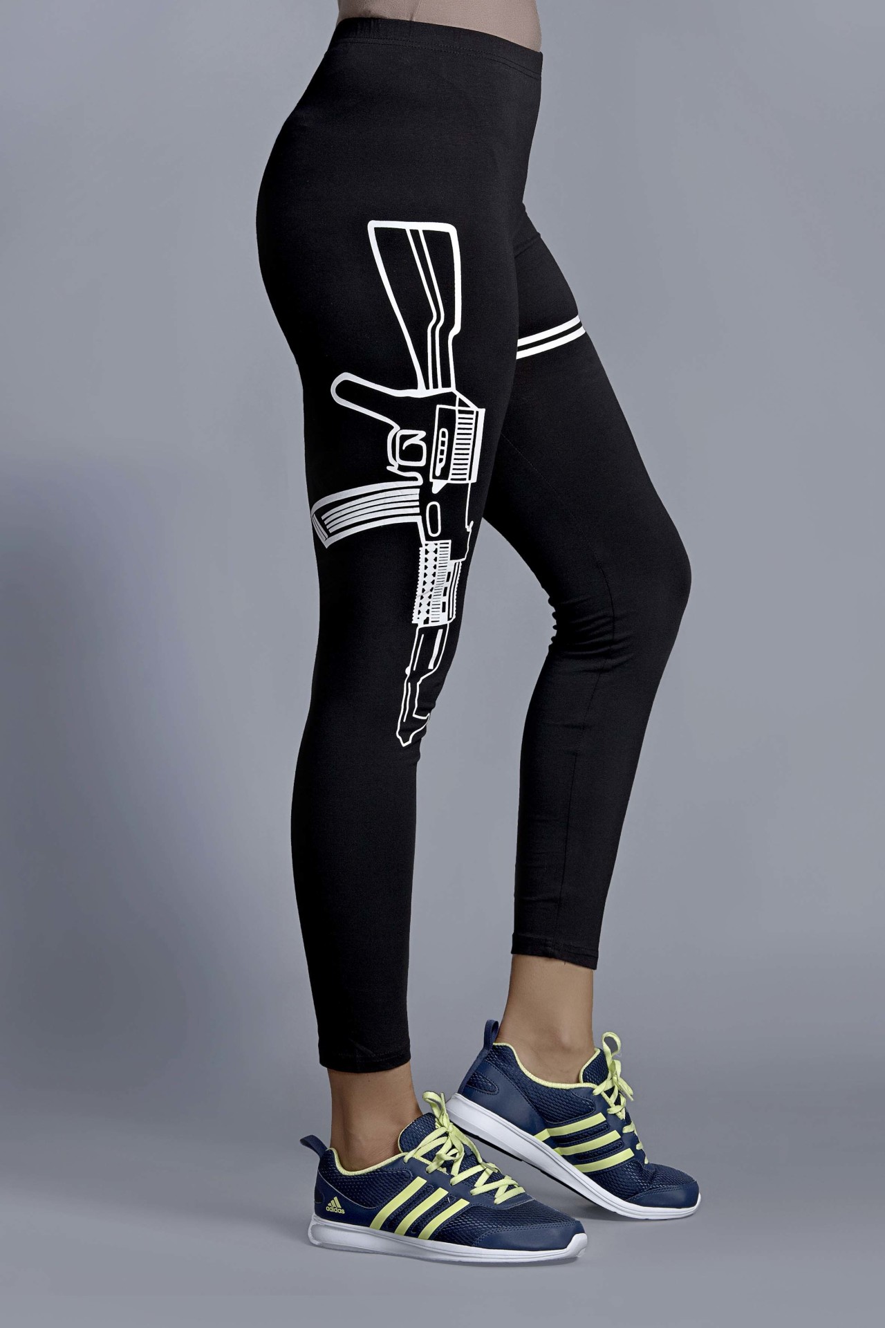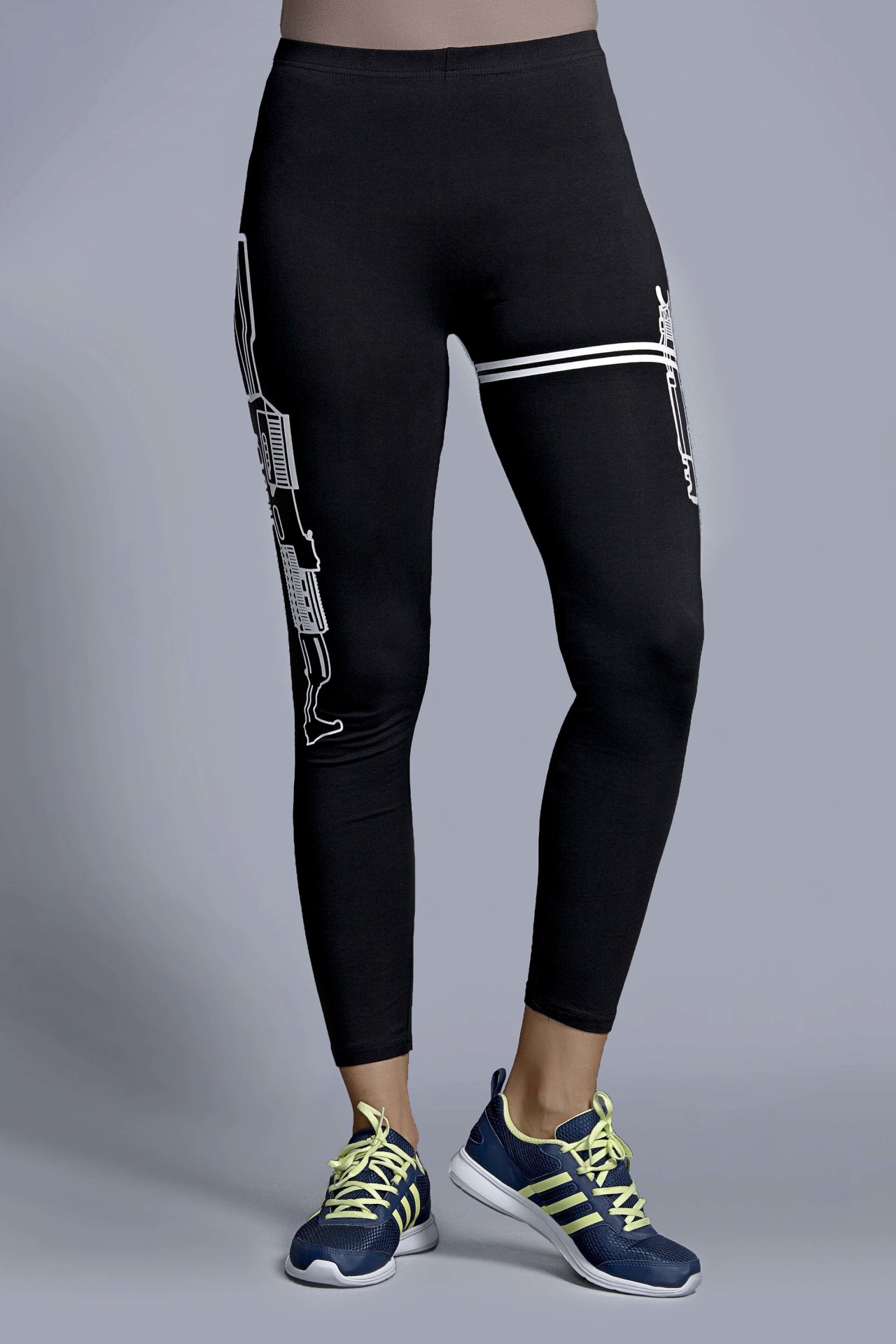 Up your gym game in this killer black leggings. With contrasting white print and elasticated waist, the only thing you have to pay attention to is your workout.