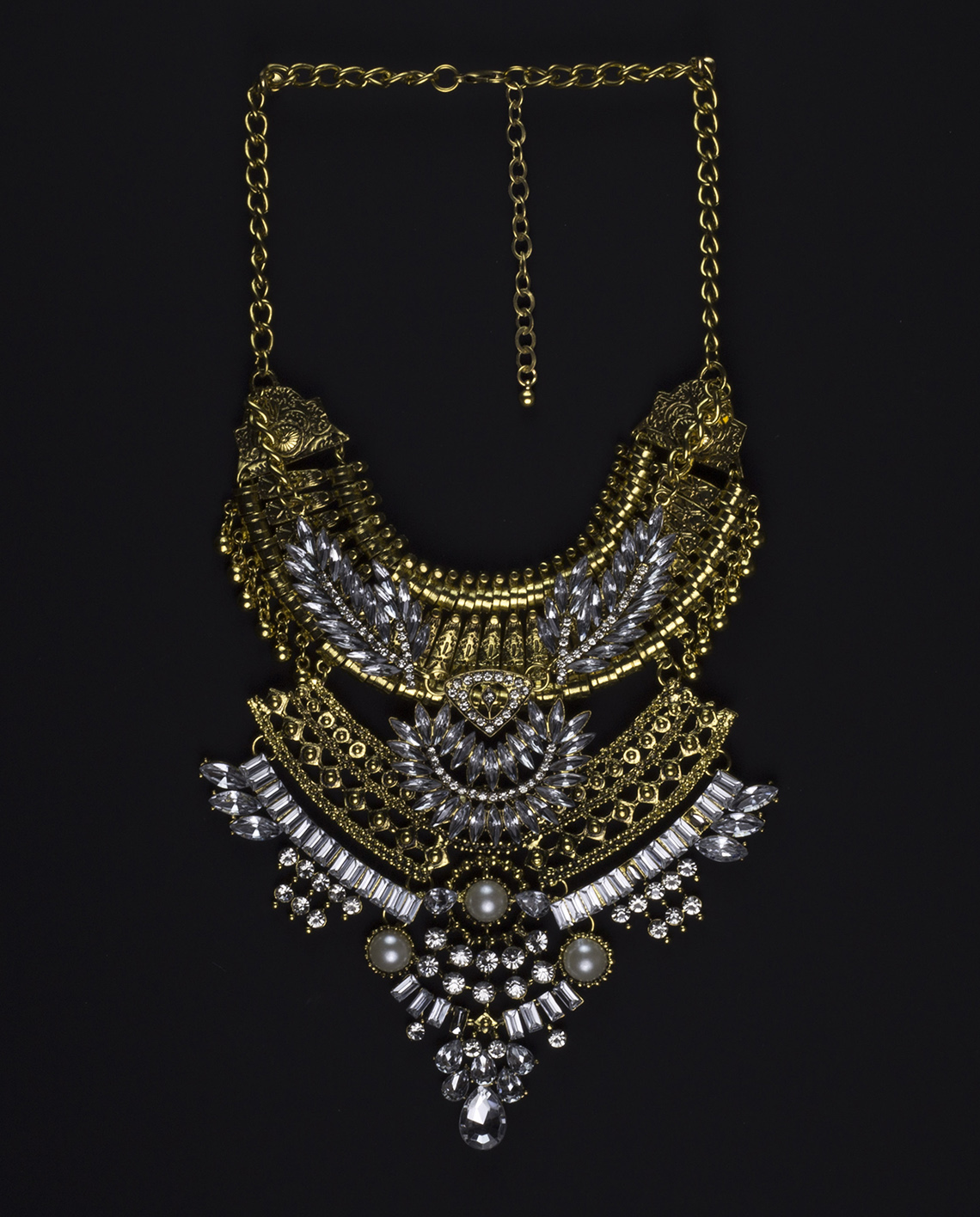 The Watch Me Shine Layered Statement Necklace personifies statement jewelry. Bold but elegant, forward yet classic. Featuring sparkling crystals, ethnic spikes, tiered chains, and finished with ornate pendants, this necklace is everything you need in an unconventional showstopper.